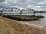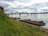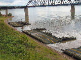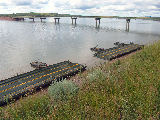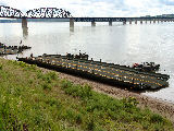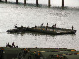 These photos were taken during the National Guards 2005 Summer Camp. The IRB rafts have been built and are being tied to shore waiting for the vehicles to arrive for ferrying across the river.