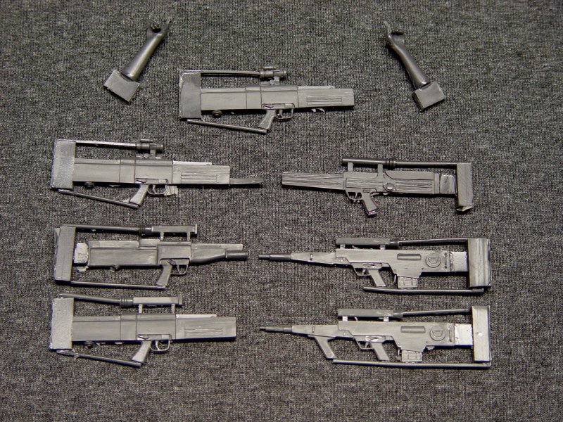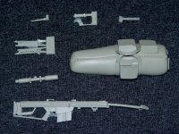 This makes a nice set of futuristic looking weapons. If I remember correctly, some of these fire case less ammunition. The first thing that really caught me when I seen this model out of the box was the strap connectors. If you wanted to put a strap on these, it would be very easy. This kit also comes with two hands.
